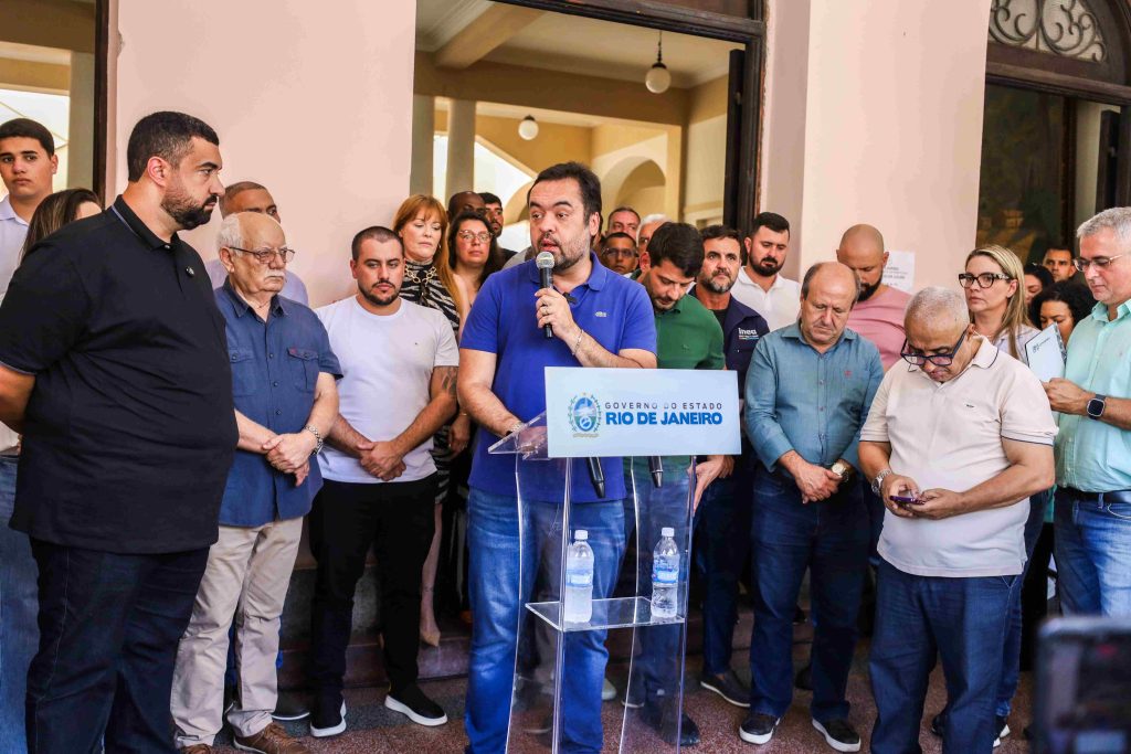 “Dentro de cerca de 10 dias, o Governo do Estado vai depositar R$ 18 milhões na conta da Prefeitura para a saúde. Também autorizamos o asfaltamento de 10 ruas, na cidade, e de uma estrada de grande importância turística, no interior, por ser acesso entre as vinícolas do município. Pode contar conosco pelos próximos dois anos, Prefeito, estamos a sua disposição. Viva Teresópolis e vamos em frente”, garantiu Cláudio Castro, junto com o secretário estadual Bernardo Rossi, de Ambiente e Sustentabilidade; o presidente do INEA (Instituto Estadual do Ambiente), Renato Bussiere; a presidente da Fundação Leão XIII, Luciana Calaça, entre outros integrantes da comitiva.