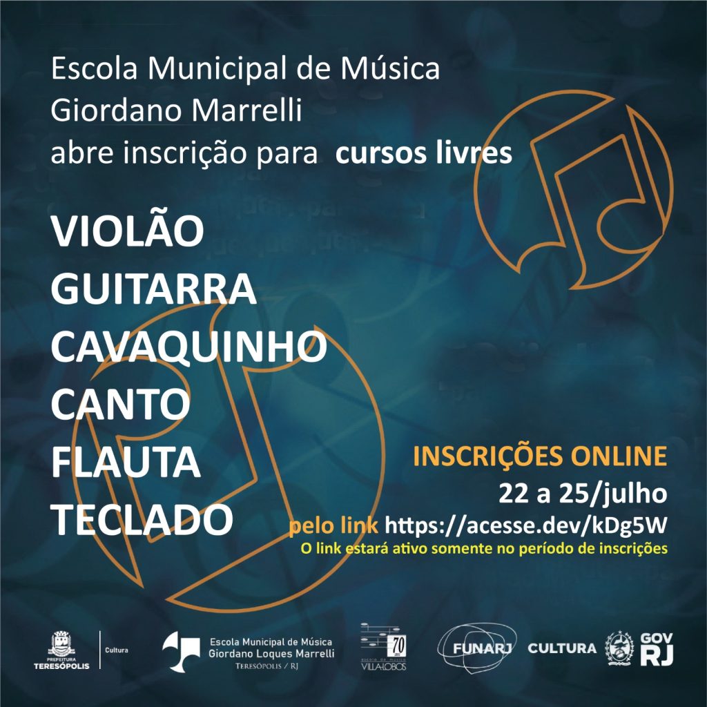 Prefeitura de Teresópolis informa: Escola Municipal de Música Giordano Marrelli abre inscrição para os cursos livres de violão, guitarra, cavaquinho, canto, flauta e teclado