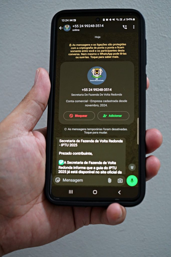 “Esses números são destinados exclusivamente à comunicação oficial da Secretaria de Fazenda com o contribuinte via WhatsApp. Os números de telefone fixo – (24) 3511-3375 e (24) 3511-3274 – também recebem ligações. Já os números de celular só recebem mensagens pelo WhatsApp”, explicou Aline Fernandes, acrescentando que, além do IPTU, os canais oficiais também informam sobre serviços como programas de regularização fiscal, como o Refis.