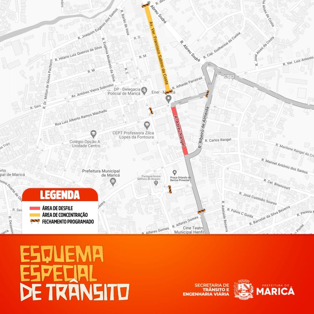 A Prefeitura de Maricá, por meio da Secretaria de Trânsito e Engenharia Viária (Sectran), fará uma série de alterações no trânsito, no sábado (04/03), com fechamento de importantes ruas do Centro para apresentação da Escola de Samba União de Maricá, campeã da Série Prata.