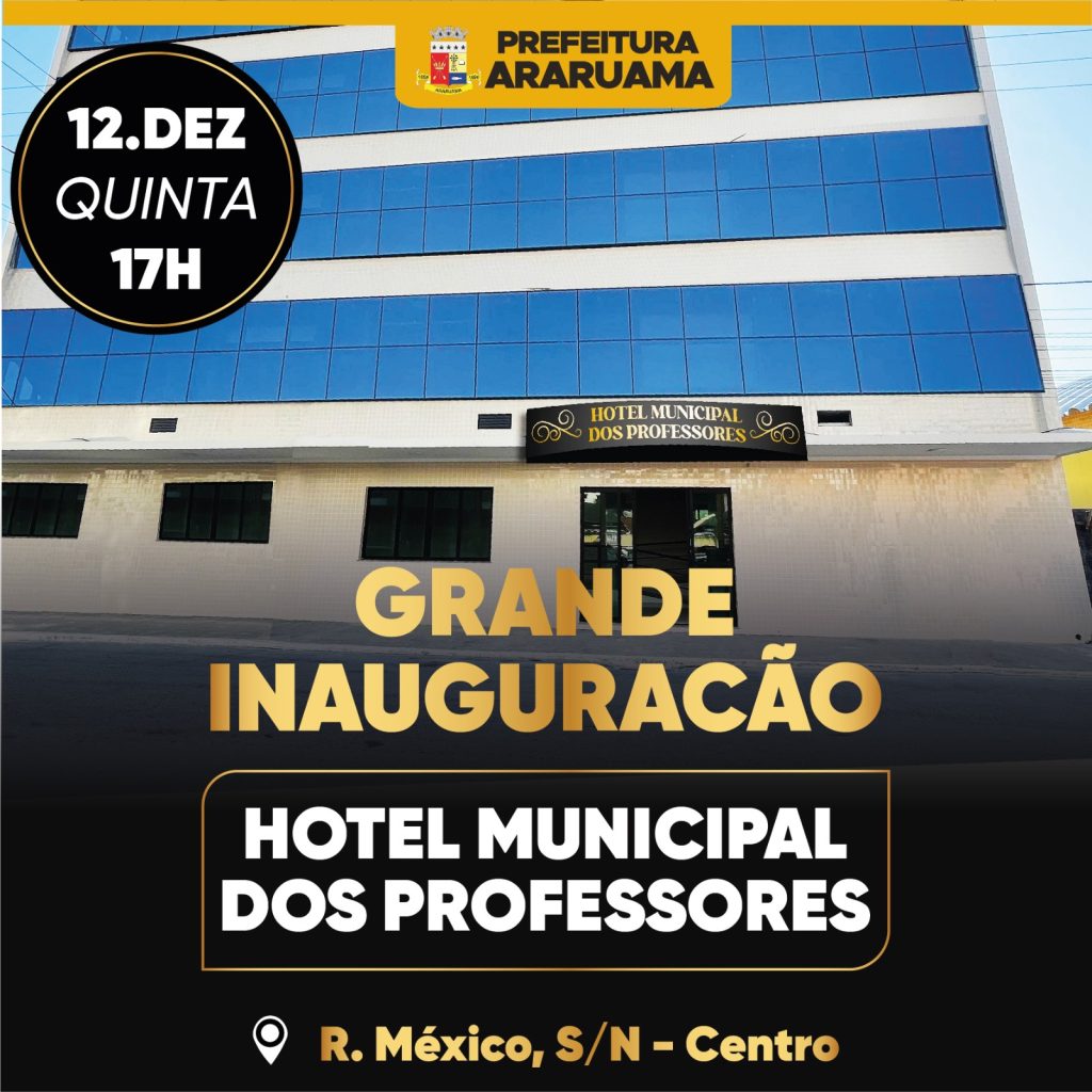 Será inaugurado nessa quinta-feira, 12, às 17h, o Hotel Municipal dos Professores, que fica na rua México, no centro de Araruama.