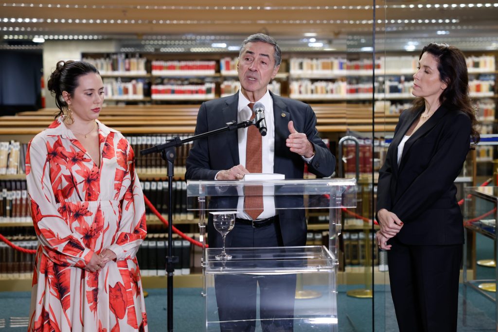 O ministro Luís Roberto Barroso, presidente do Supremo Tribunal Federal (STF), participou na noite desta quarta-feira (2) do lançamento da obra “Direito Autoral e Entretenimento: novas perspectivas jurídicas”, na Biblioteca Ministro Victor Nunes Leal. O livro, coordenado pelas advogadas Ana Paula Borges Martins e Letícia Provedel, tem prefácio assinado pelo presidente do STF.