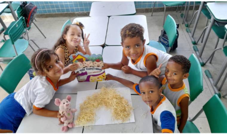 Durante uma semana, na Escola Municipal Professora Diva Teixeira Martins, o projeto “Do meu lugar ao lugar do outro”, tema proposto pela Secretaria Municipal de Educação para trabalhar a leitura, escrita e desenho – mergulhou nas experiências das crianças. O professor apresentou diferentes versões da história “Os Três Porquinhos”, com a contraposição das obras “Os Três Lobinhos e o Porco Mau” e a “A Verdadeira História dos Três Porquinhos”.