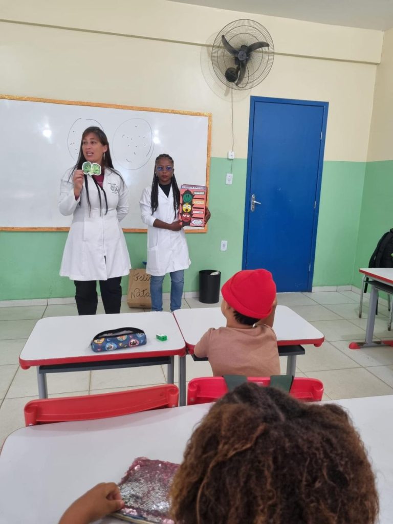 Para os alunos do Ensino Fundamental, os temas trabalhados incluíram alimentação saudável, higiene pessoal e bullying. As ações foram conduzidas por meio de dinâmicas interativas, uso de materiais ilustrativos e rodas de conversa, para trazer reflexão e diálogo. Ainda, os estudantes puderam expressar suas opiniões e tirar dúvidas com o intuito de compreender a importância do autocuidado, do respeito mútuo e da convivência harmoniosa no ambiente escolar.