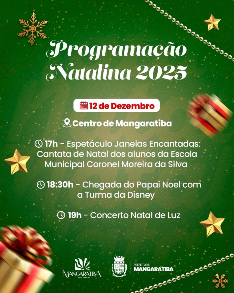 A Prefeitura de Mangaratiba realiza, nesta sexta-feira, 12 de dezembro, a abertura oficial da Programação Natalina 2025, com uma noite repleta de atrações especiais na Praça Robert Simões, no Centro. Além de luzes, velas e decoração temática preparada para receber moradores e visitantes, o local receberá o concerto de Natal de Luz, a cantata Janelas Encantadas e a chegada do Papai Noel.