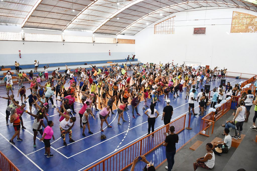 Moradora do bairro Cerâmica, a aposentada Edna Toledo, de 65 anos, é uma das cerca de 1.600 alunas inscritas no programa “Esporte é Saúde nos Bairros”, da Secretaria Municipal de Esporte e Lazer (SEMEL) de Nova Iguaçu. Na manhã desta sexta-feira (21), ela esteve na Vila Olímpica da cidade para participar do “Aulão da Alegria”, uma ação de integração com participantes de outros polos. O evento, aberto ao público, recebeu centenas de pessoas, que aproveitaram a oportunidade para praticar atividades físicas.
