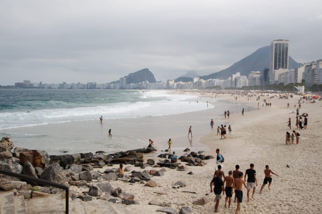 Neste domingo (1º), o sol apareceu por alguns momentos, mas as nuvens ficaram em maior número no céu. Apesar do tempo, cariocas e turistas aproveitaram a Praia do Leme, na Zona Sul, para praticar esportes pela orla, caminhar na areia e entrar no mar – mesmo com a água agitada.