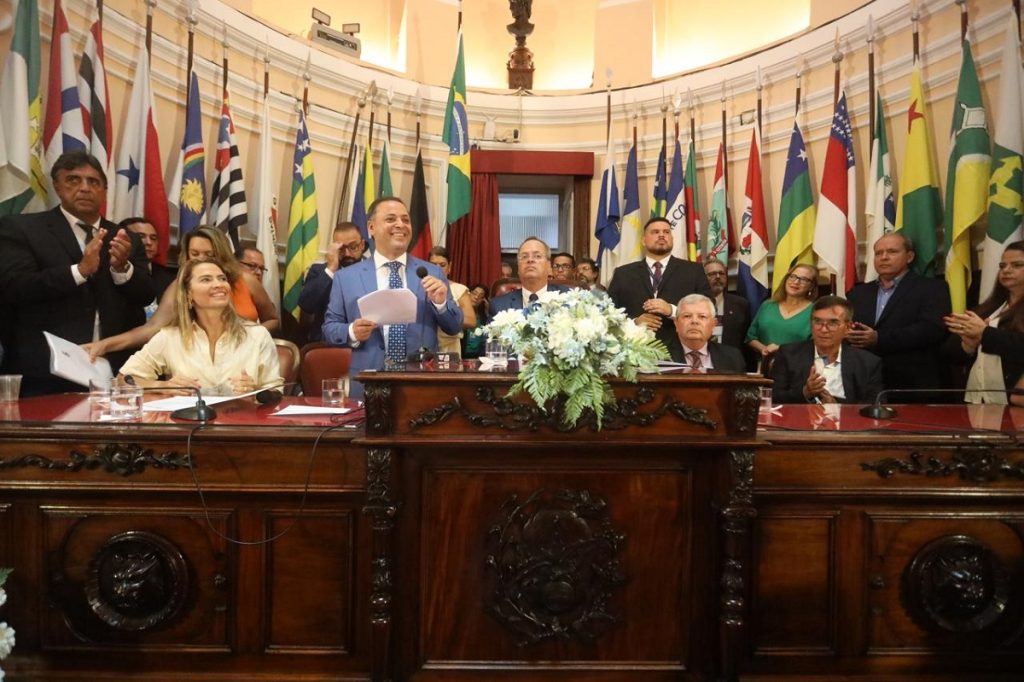 Rodrigo Neves tomou posse como prefeito de Niterói em cerimônia realizada na Câmara de Vereadores, nesta quarta-feira (01). Em discurso, o prefeito destacou que o Centro será o novo vetor de desenvolvimento da cidade. Rodrigo Neves confirmou que a primeira ação do novo governo será a ampliação da Moeda Social Arariboia para mais 9.500 famílias. A medida vai beneficiar diretamente mães de crianças atípicas e idosos que ganham até um salário mínimo. A solenidade na Câmara também oficializou a vice-prefeita, Isabel Swan, e os 21 vereadores eleitos para o período entre 2025 e 2028.