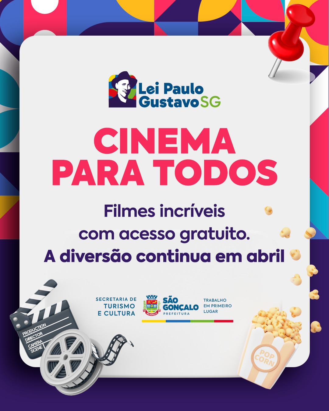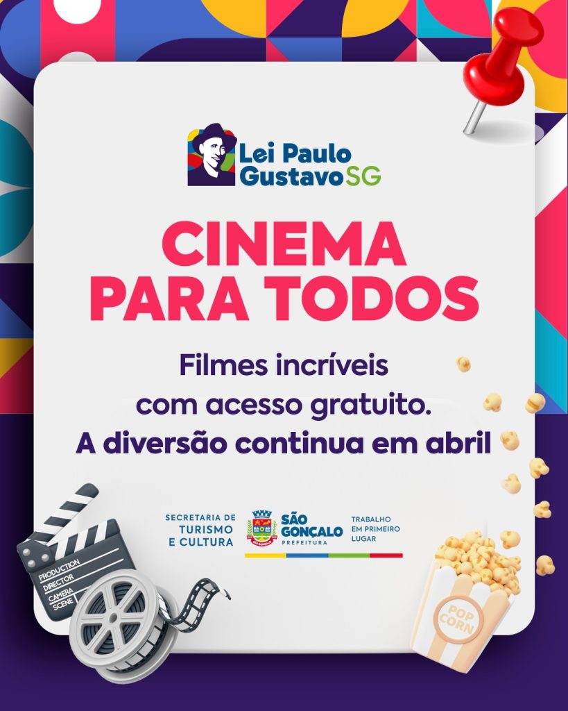 O Cinema Para Todos é realizado com apoio do Ministério da Cultura, Secretaria de Turismo e Cultura de São Gonçalo e Governo Federal, através da Lei Paulo Gustavo, reforçando o compromisso com o acesso à cultura e à valorização do audiovisual.