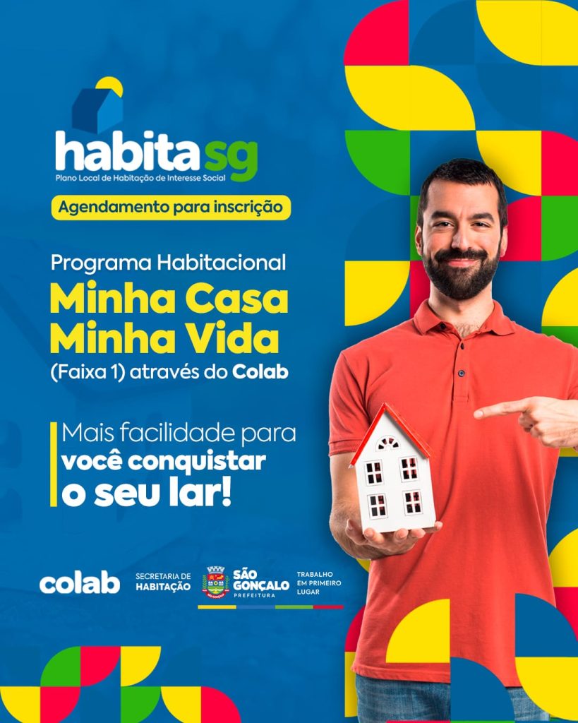 Pelo aplicativo Colab, os gonçalenses conseguem agendar a data e o horário para o atendimento presencial por servidores da Secretaria de Habitação, quando deverão apresentar os documentos necessários para realizar a inscrição no programa.