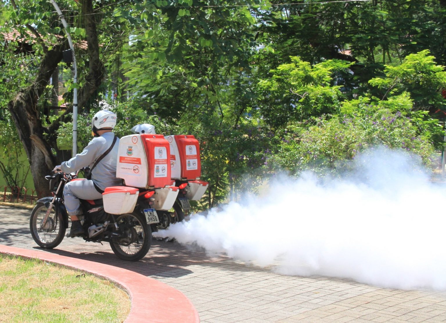 A Vigilância em Saúde Ambiental continua com a ações de intensificação contra a proliferação do mosquito Aedes aegypti – transmissor da dengue, zika e chikungunya – nesta semana. Todas as equipes das motofogs estão realizando a pulverização de inseticida. A sanitização contra o coronavírus está suspensa por tempo indeterminado.