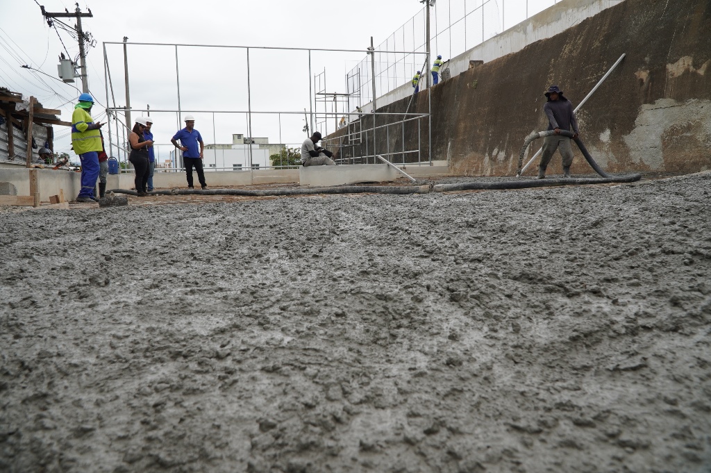 As obras do programa Praça Renovada no bairro Jardim Miriambi seguem avançando. Nesta terça-feira (4), foi feita a concretagem do piso da área de convivência da nova praça, que fica ao lado da creche municipal que também está em construção.