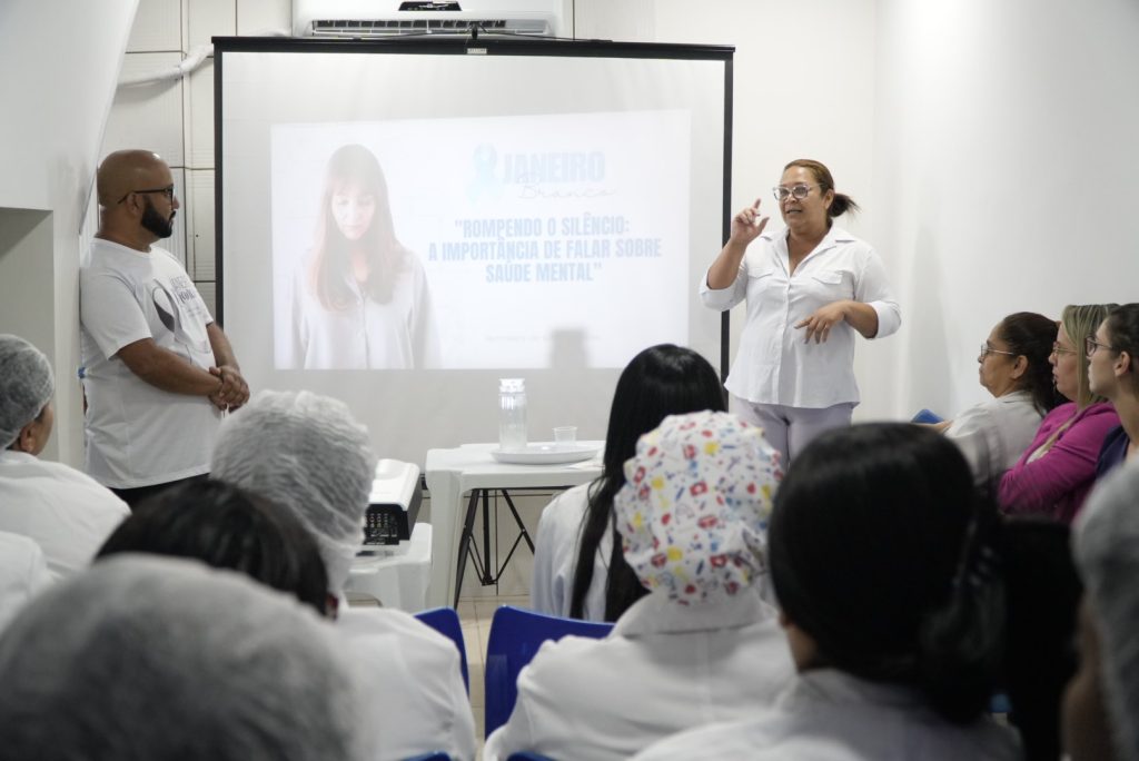 Na parte da manhã, o enfermeiro da rede municipal de saúde Edmilson da Silva falou sobre o tema que deu nome ao evento “Quem Cuida da Mente, Cuida da Vida” e abriu o ciclo de palestras para os funcionários.