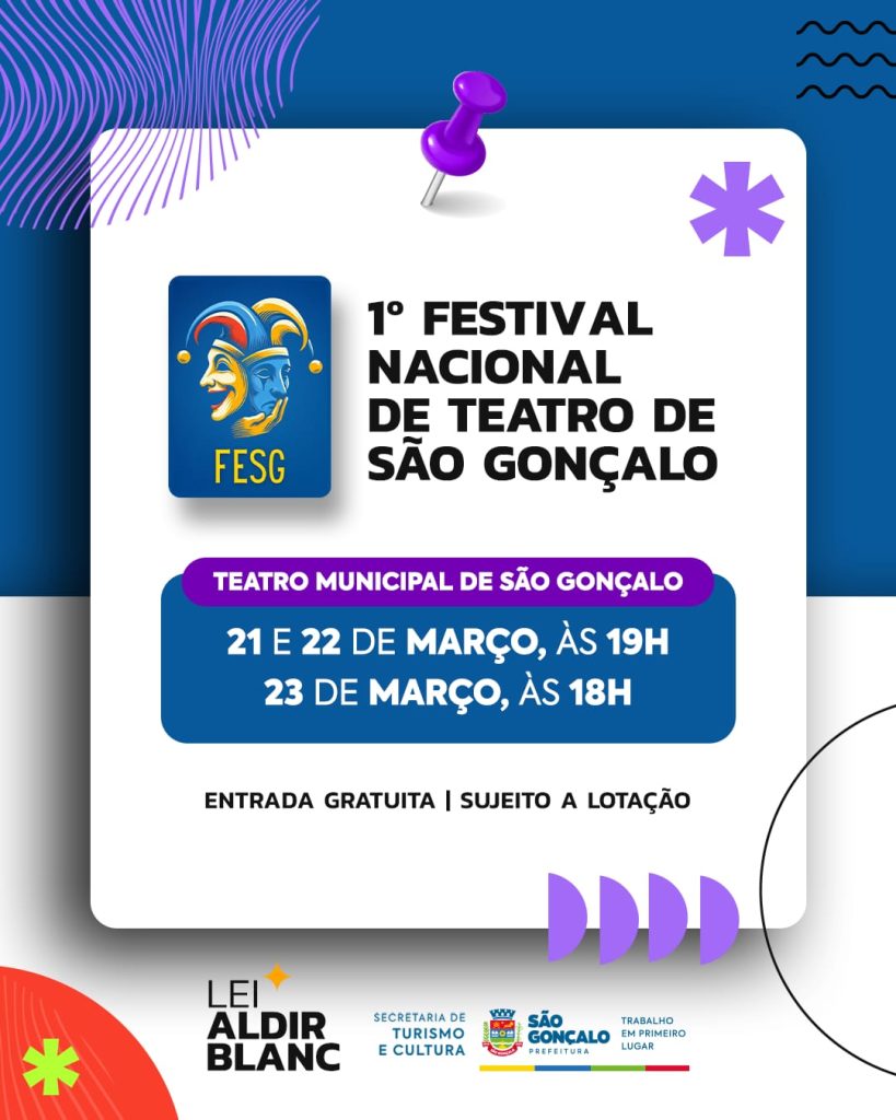 O FESG – Primeiro Festival Nacional de Teatro de São Gonçalo, um evento cultural inovador e gratuito, acontecerá nos dias 21, 22, 23 deste mês, no Teatro Municipal de São Gonçalo. Com incentivo da Lei Aldir Blanc, o festival promete ser um marco na história cultural da cidade, reunindo cenas teatrais de diversos Estados e promovendo um intercâmbio artístico entre diferentes regiões do Brasil.