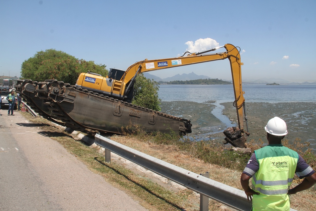 “Vamos fazer a dragagem desse canal, retirando sedimentos e resíduos, tudo o que é jogado nos rios e deságua nesse canal, como lixo e pneu. É importante que a população se conscientize e não faça o rio de lixeira. Essa dragagem especificamente neste espaço é inédita, nunca foi feita antes. Esse canal deságua na Baía de Guanabara. Desde 2024, estamos trabalhando com essa máquina, que é mais tecnológica e realiza o trabalho sozinha, sem a necessidade de outra máquina ou de balsas”, disse.