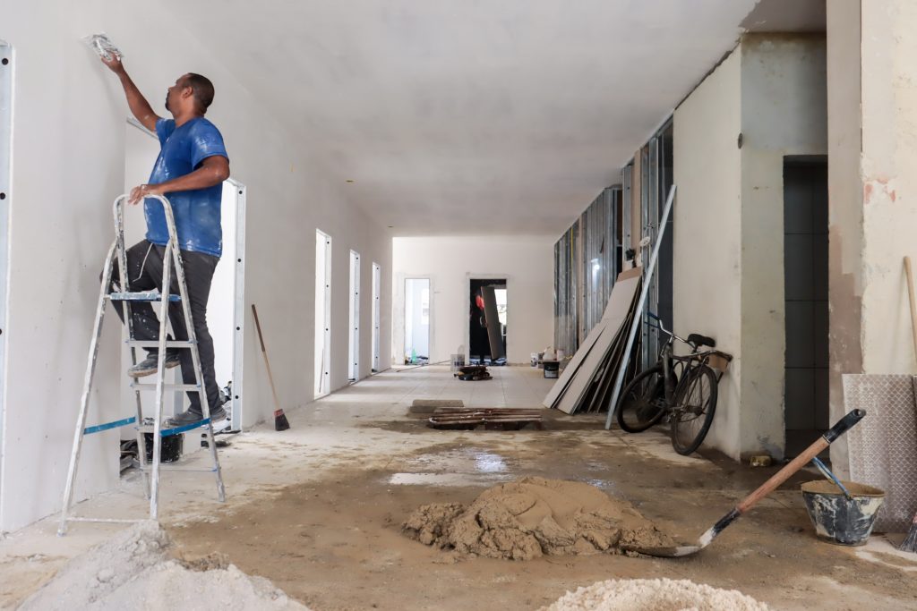 Com apenas três meses de obras, um antigo salão de festas está sendo transformado em mais uma unidade de saúde da família (USF) para atender os moradores do bairro Coelho. Localizada na Rua Armando Rance esquina com a Rua Francisco Rafaelli, o novo posto tem equipes atuando nas instalações do forro, dos batentes das portas e soleiras; confecção do emboço, aplicação de revestimentos e massa nas paredes.