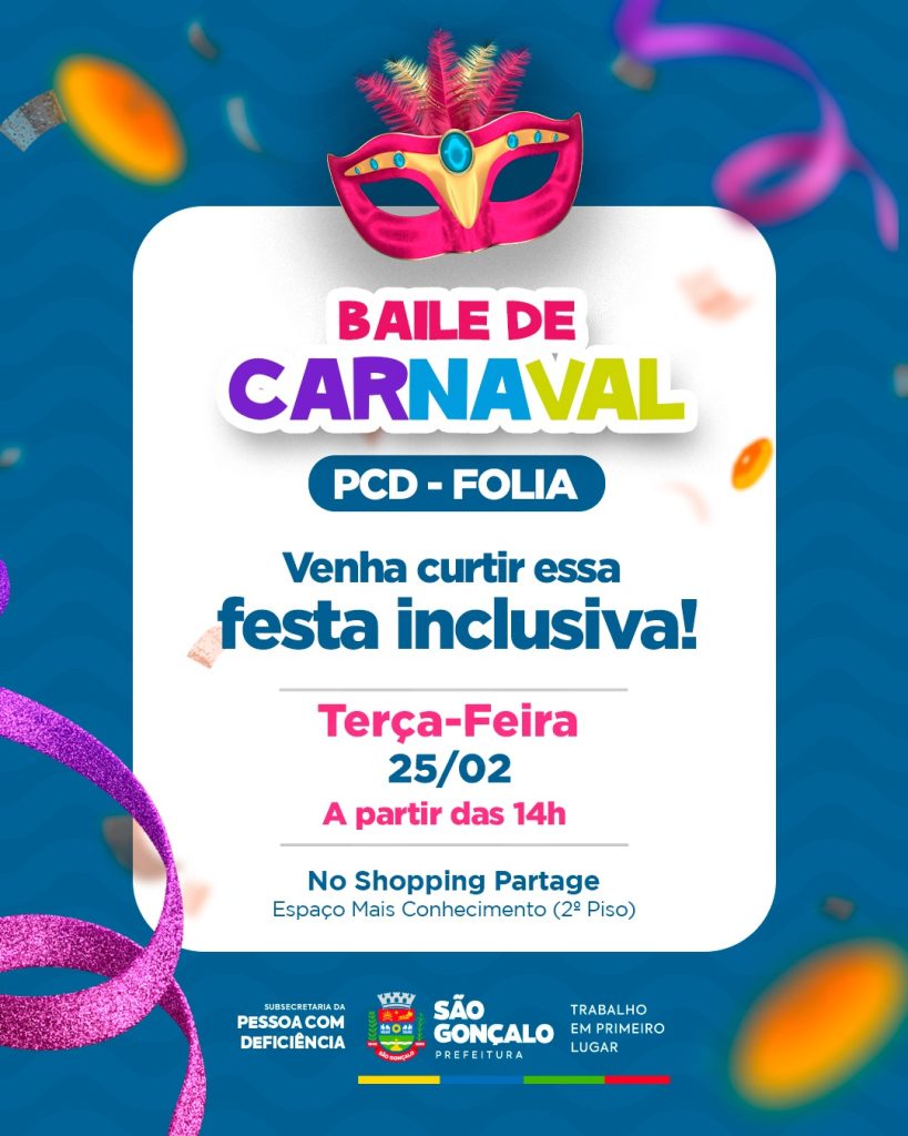 O carnaval está chegando e, para antecipar as comemorações, a Secretaria de Assistência Social da Prefeitura de São Gonçalo, através da Subsecretaria da Pessoa com Deficiência, vai realizar um baile na próxima terça-feira (25), às 14h. O evento vai acontecer no Shopping Partage, no Espaço Mais Conhecimento.