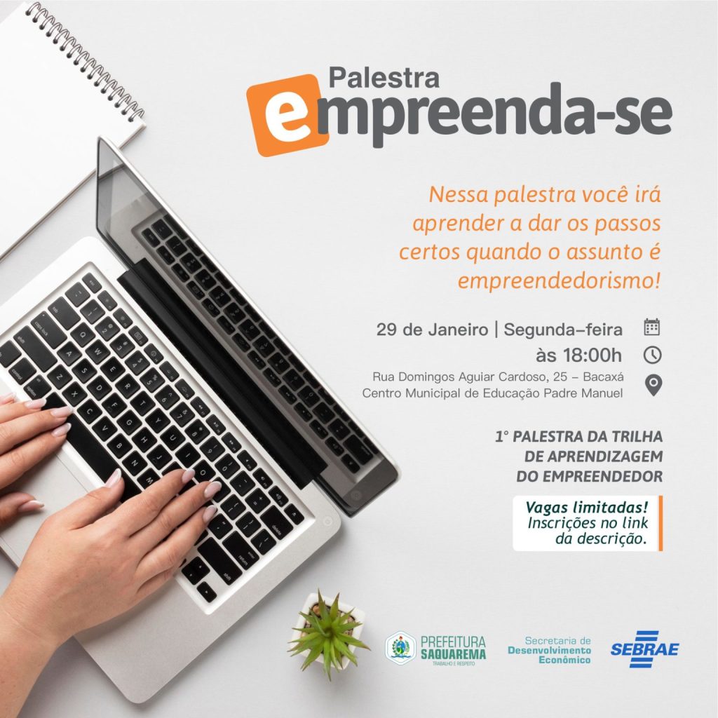 Em uma iniciativa conjunta entre a Prefeitura de Saquarema, por meio da Secretaria de Desenvolvimento Econômico, e o SEBRAE, irá realizar a palestra “Empreenda-se”, evento que tem como objetivo oferecer ideias valiosas sobre empreendedorismo.