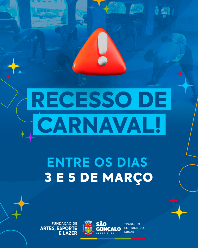 Neste período de carnaval, da segunda-feira (3) até a Quarta-feira de Cinzas (5) todos os núcleos dos projetos ‘Saúde em Movimento’ e ‘Esporte em Ação’ estarão em recesso. As aulas retornam normalmente na quinta-feira (6).