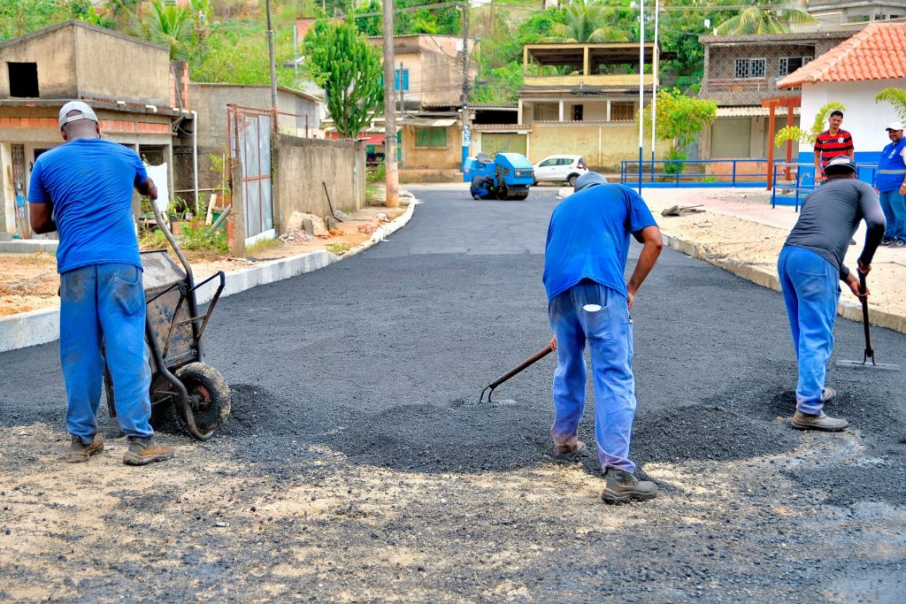 As equipes realizaram obras de concretagem em uma das principais vias no Jardim Bom Pastor, na Rua Angélica, no Morro do Cruzeiro.