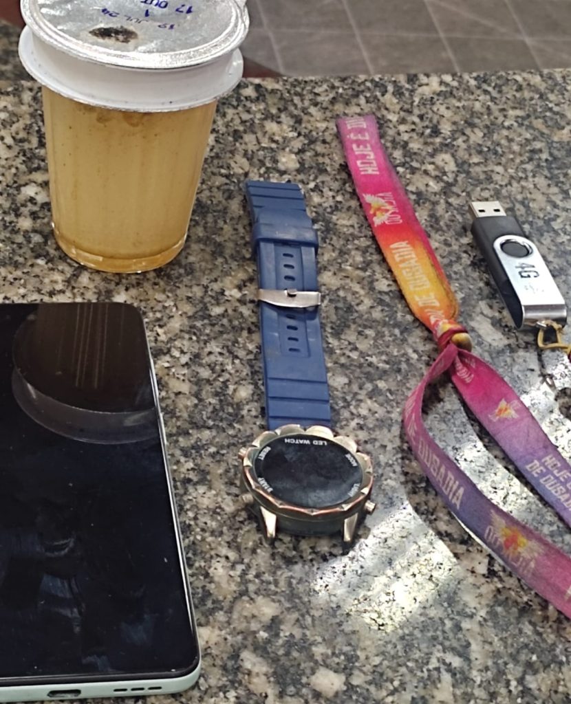 Ao se aproximarem, os agentes flagraram o acusado roubando bens do motorista, incluindo um relógio, um celular e a quantia de R$ 23,00. A vítima contou que o homem estava fazendo parecer que estava armado ao colocar a mão na cintura, mas nenhuma arma foi encontrada com ele.