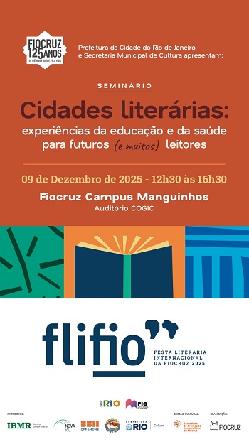 O seminário Cidades Literárias integra a pesquisa-ação Entre Feiras: práticas de incentivo à leitura em tempos e territórios adversos, realizada pela Cooperação Social da Presidência da Fiocruz, coordenada por Leonídio Madureira, com gestão cultural da Sociedade de Promoção Sociocultural da Fiocruz (SOCULTFio).