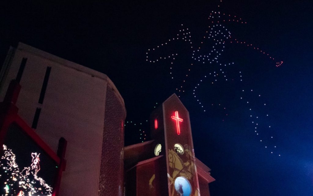 Show de drones encanta fiéis em Alvorada de São Jorge em Quintino