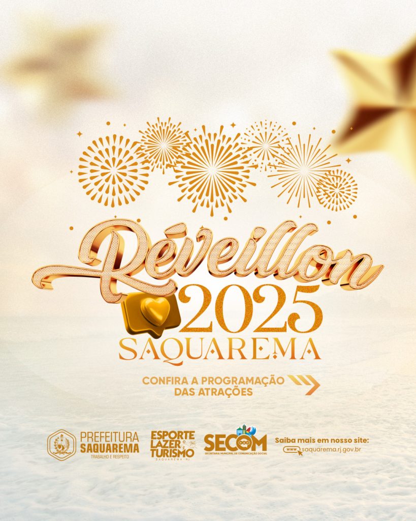 A Prefeitura de Saquarema, por meio da Secretaria Municipal de Esporte, Lazer e Turismo, preparou uma linda festa para celebrar a chegada de 2025. Com eventos em diversos bairros, a programação terá início no dia 27 de dezembro. Além da tradicional queima de fogos, quatro palcos serão montados no Centro, Jaconé, Vilatur e Sampaio Corrêa. Nestes locais, diversos shows animarão ainda mais a virada de ano em Saquarema.