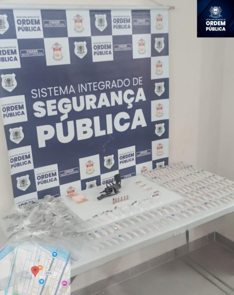 Durante a abordagem, o homem confessou que havia mais entorpecentes e uma arma de fogo escondidos em sua residência. No endereço indicado, os agentes encontraram 276 pinos de cocaína, 180,5 gramas de maconha, um revólver calibre .32 com numeração suprimida e cinco munições intactas.