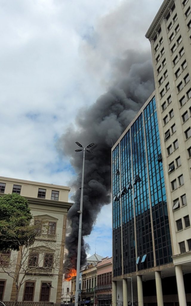 Sobrado pega fogo no Centro do Rio em frente ao prédio da UFRJ
