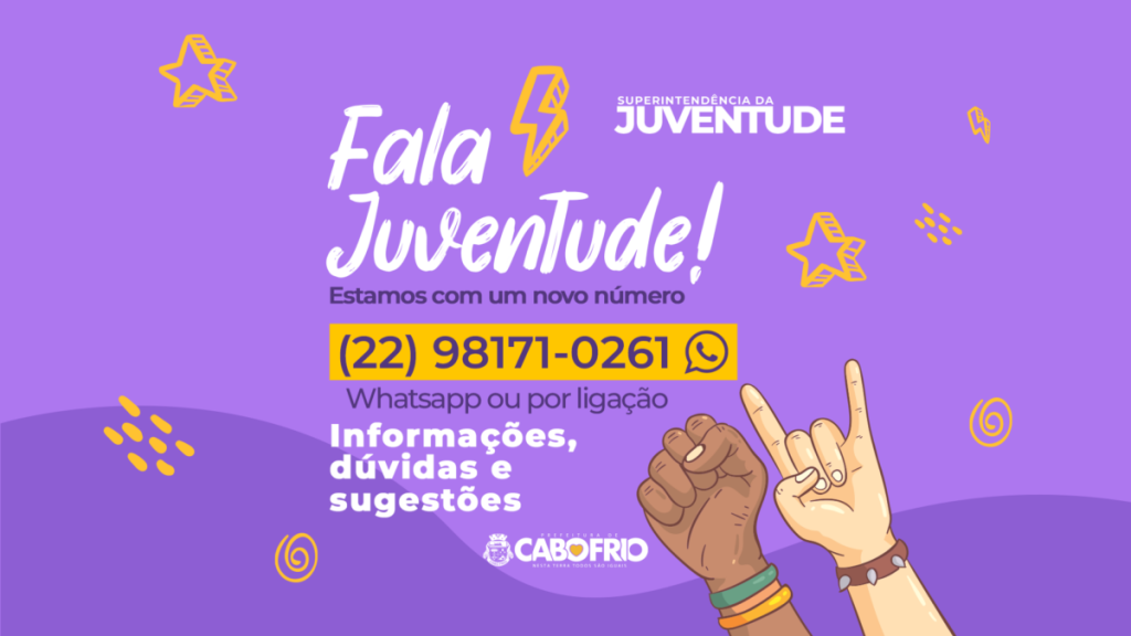 Os jovens de Cabo Frio têm um canal direto com o poder público. Esse diálogo com a Superintendência da Juventude tem como suporte inicial o WhatsApp da pasta, que está, inclusive, com número novo. O contato a partir de agora pode ser feito pelo (22) 98171-0261.