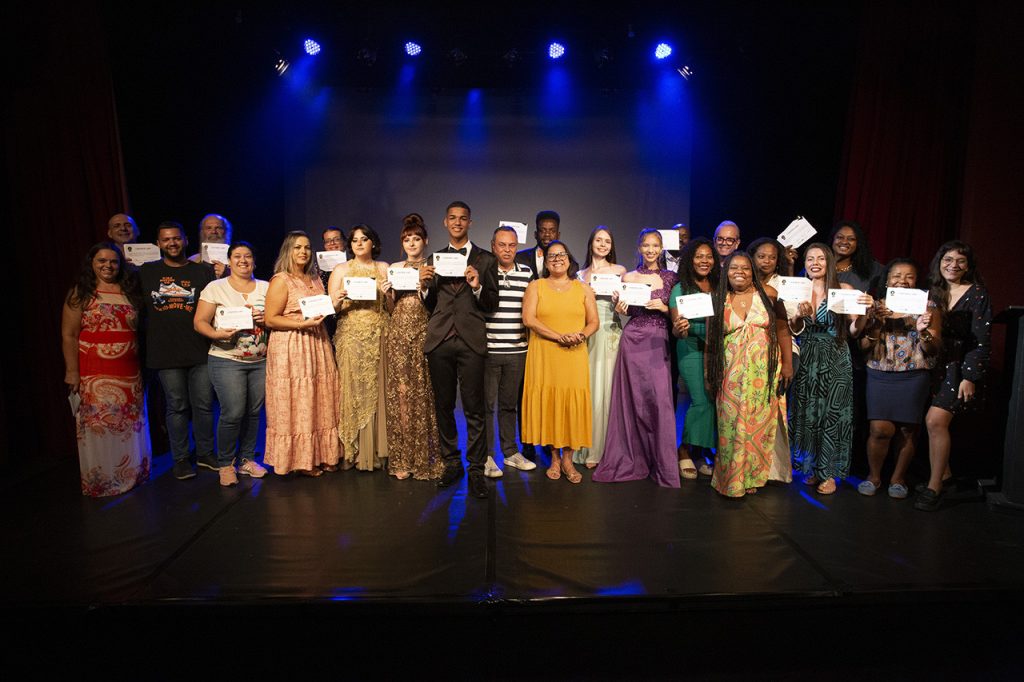 A cerimônia de formatura dos cursos do projeto “Ateliê Cultural 2023” — oferecidos gratuitamente pela Fundação Cultural Jornalista Oswaldo Lima (FCJOL) — foi realizada na noite dessa segunda-feira (8), no Teatro de Bolso Procópio Ferreira. Na ocasião, os alunos dos diversos cursos receberam seus certificados. Performances artísticas também marcaram o evento promovido pela Prefeitura de Campos, que terminou com o lançamento de novos cursos.