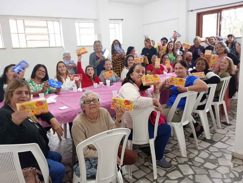 Após as brincadeiras e a oração, todos foram convidados para um delicioso lanche com salgadinhos, bolo de chocolate e a distribuição de caixas de bombons para os presentes – tudo doado por colaboradores e parceiros costumeiros do CRAS Alto.