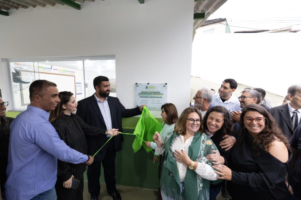 Com a presença de alunos e familiares, professores e equipe diretiva, vereadores, o Prefeito Leonardo Vasconcellos, acompanhado da Primeira-dama, Cláudia Soares, a vice-prefeita, Dra Afaf Ribeiro, e secretários, foi reinaugurada nesta quarta-feira (30/04), a Escola Municipal Governador Portella. Localizada no Jardim Pinheiros, a unidade de ensino, que atende cerca de 200 alunos, passou por obra de reforma, modernização e ampliação do espaço, com a construção de três salas de aula e de banheiros adaptados para PcD (Pessoas com Deficiência). Toda a área externa foi revitalizada. O espaço vai oferecer 30 novas vagas do Pré-escolar ao 5° Ano do Ensino Fundamental e voltará a funcionar em tempo integral, importante conquista para a comunidade escolar.