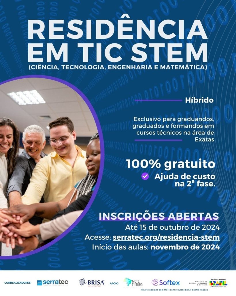 Outras informações no Instagram @serratecoficial. O edital e o link para as inscrições podem ser encontrados em https://serratec.org/residencia-stem/.