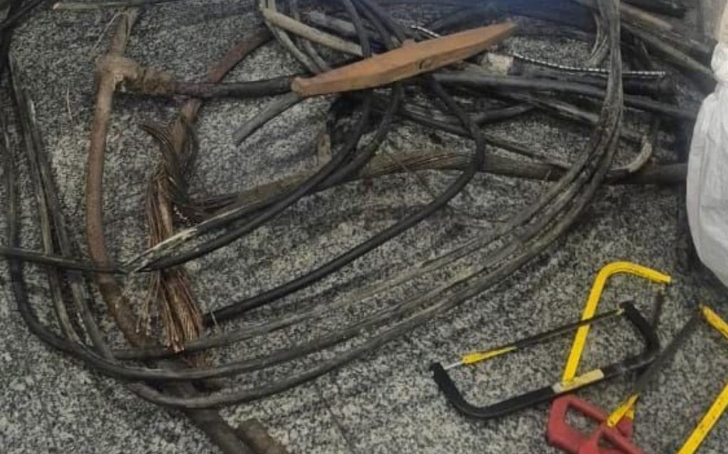 Com os suspeitos, foram apreendidos sete facas, cinco serras, dois alicates, uma lanterna e o material produto do crime