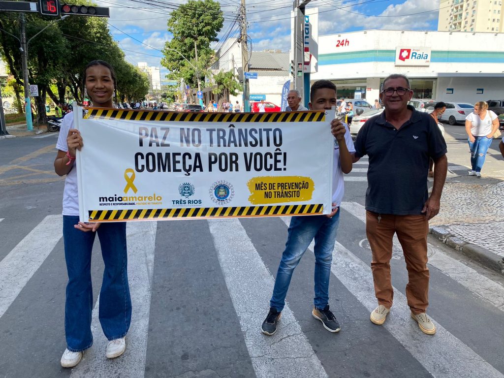 Os integrantes da primeira turma da Guarda Civil Mirim de Três Rios, estiveram nesta quarta-feira (dia 08), nas principais ruas do Centro da cidade, panfletando na Campanha Maio Amarelo. A ação, coordenada pela Secretaria Municipal de Ordem Pública e Políticas de Segurança, vai se repetir em todas as quartas-feiras do mês, finalizando no dia 29 com uma ação na Praça São Sebastião.