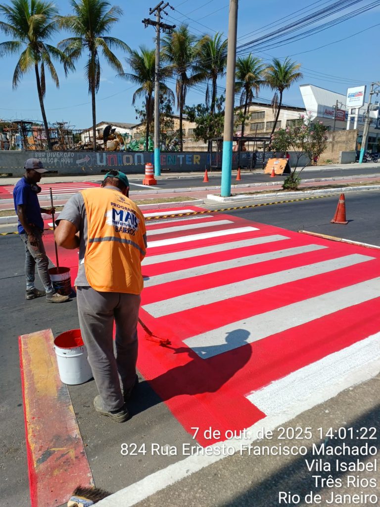 A Prefeitura de Três Rios segue avançando em ações voltadas à segurança e mobilidade urbana. As equipes da Secretaria de Transporte e Mobilidade estão realizando nesta semana a revitalização das faixas de pedestres e demais sinalizações viárias em importantes vias da cidade, como a Avenida Zoelo Sola e a Rua Santo Antônio, no bairro Triângulo. Ainda nesta semana, o serviço deve ser estendido à Rua Direita.