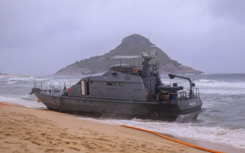 A Marinha do Brasil concluiu, na noite desta quinta-feira (12), a operação de resgate ao Aviso de Patrulha “Marlim”, que encalhou na Praia da Macumba, na última terça-feira (10). O barco ficou preso ao tentar ajudar a Embarcação de Desembarque de Carga Geral (EDCG) “Guarapari”, que também encalhou, na segunda-feira (9).