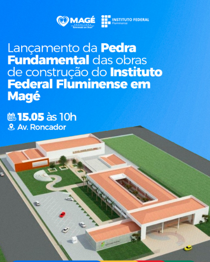 No dia 15/05, às 10h, será realizado o lançamento da Pedra Fundamental das obras do Instituto Federal Fluminense (IFF) no município, na Av. Roncador.