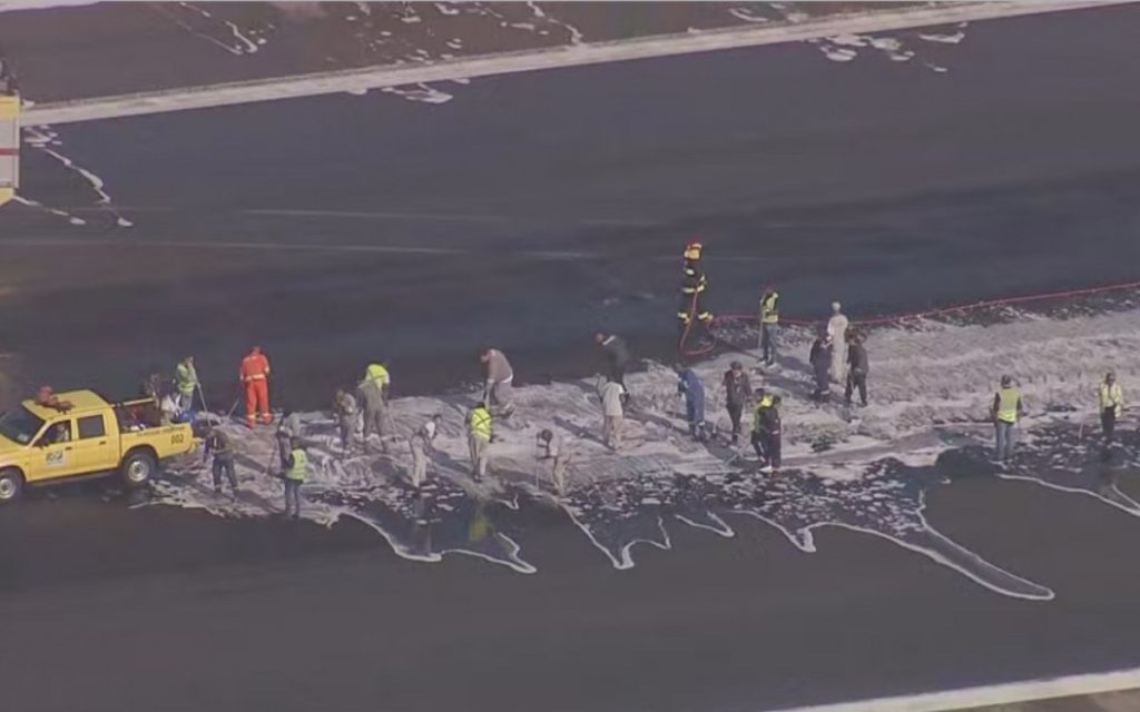 Com apoio de um veículo, funcionários limpam a pista com vassouras e detergente. Por conta da ocorrência, até o momento, houve registro de 23 voos de chegada cancelados, 23 voos de partidas atrasados e outros 10 alternados para o Aeroporto Internacional Tom Jobim, o Galeão, na Ilha do Governador, Zona Norte. A concessionária RIOgaleão confirmou que recebeu os voos.