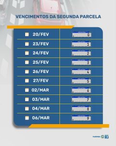 Os condutores de veículos que optaram pelo parcelamento do IPVA de 2026 devem se atentar ao vencimento da segunda parcela, que começa nesta sexta-feira (20/02). A segunda fase do calendário de pagamento do tributo vai até 6 de março, de acordo com o final da placa de cada veículo. Cerca 1,9 milhão de veículos estão com o imposto em atraso (cota única ou primeira parcela) e sujeitos a multa de 0,33% ao dia, limitada a 20%, mais juros, sobre a parcela já vencida.