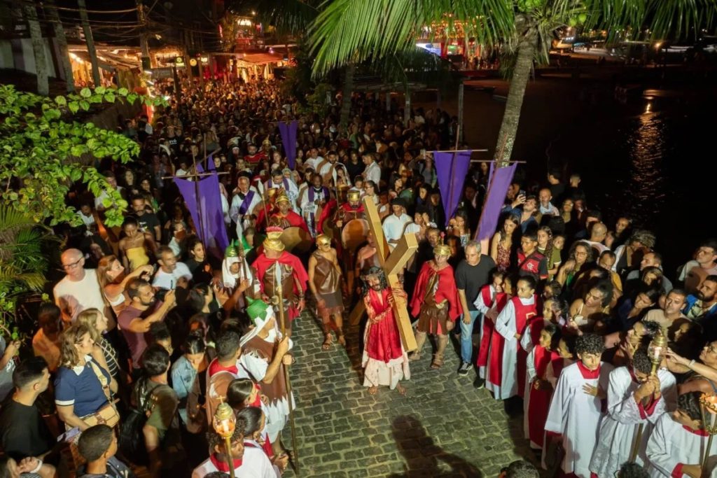 Milhares de pessoas participaram, nesta sexta-feira (03), da tradicional Via Sacra de Armação dos Búzios, que neste ano celebrou 26 anos de fé e devoção. A encenação, realizada pela Paróquia de Sant’Anna e Santa Rita de Cássia, contou com o apoio da Prefeitura, por meio da Secretaria de Cultura e Patrimônio Histórico.
