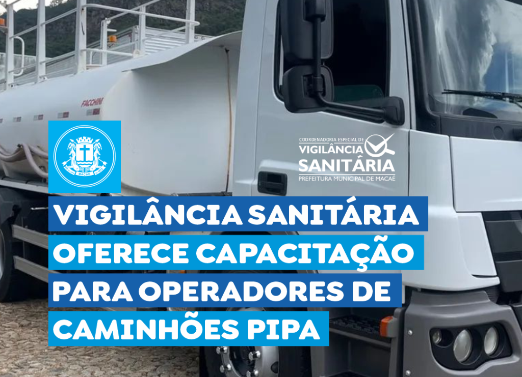 “A capacitação em ´Operador de Veículos Transportadores de Água Potável´ vai trazer orientações sobre a legislação sanitária vigente e suas obrigações, garantindo que a água potável destinada ao consumo humano esteja dentro dos padrões estabelecidos”, explica a Coordenadora Especial de Vigilância Sanitária, Camila Almeida.
