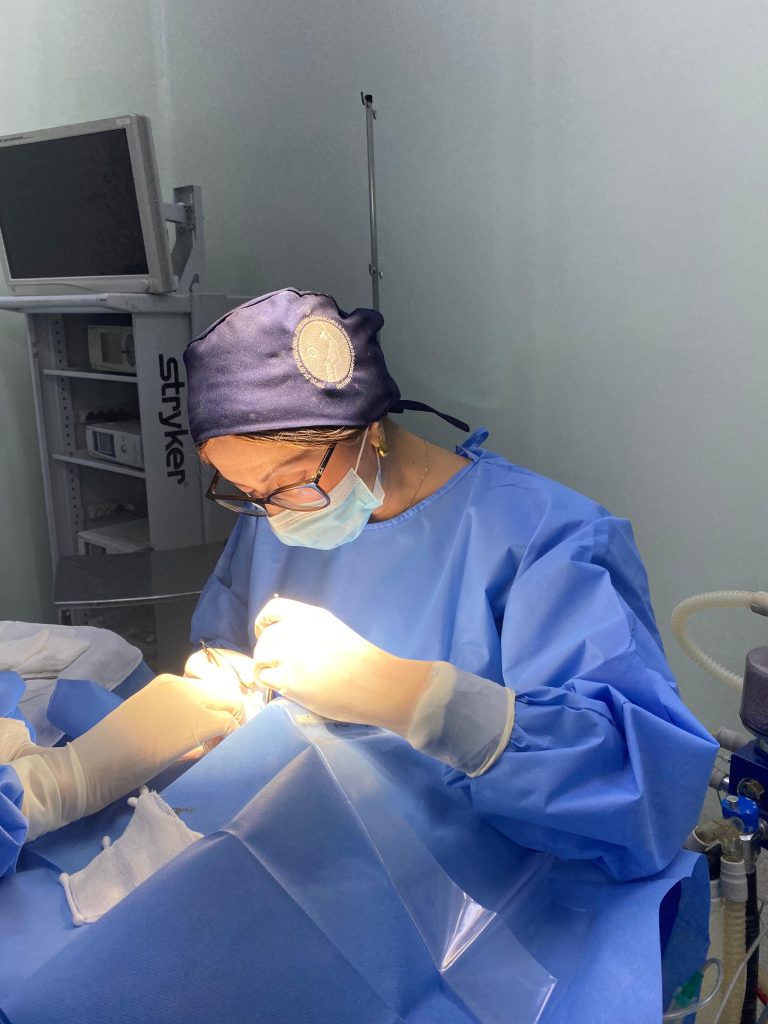 O mutirão prosseguiu no sábado com a realização de vários tipos de cirurgias. Seis delas foram realizadas pela drª. Talissa, incluindo uma correção de ectrópio em um paciente de 77 anos. Ela busca reposicionar a pálpebra que se dobra para fora, restaurando sua função protetora. O procedimento corrige deformidades causadas por envelhecimento, paralisia ou cicatrizes, prevenindo desconforto, irritação ocular e complicações futuras, promovendo melhora imediata no alinhamento e proteção do olho, garantindo saúde ocular e conforto ao paciente.