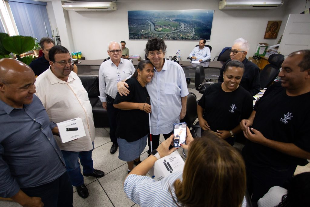 A Prefeitura de Volta Redonda realizou nesta quinta-feira (9) a entrega dos primeiros pares de óculos equipados com o aparelho de tecnologia assistiva OrCam MyEye 2, que conta com um revolucionário sistema de reconhecimento de caracteres capaz de facilitar a leitura de textos, localização de objetos e identificação de cédulas, entre outros recursos que irão ajudar na autonomia e socialização. A cerimônia, realizada no Palácio 17 de Julho, aconteceu no dia em que se comemorou, em 2025, o Dia Mundial da Visão, celebrado todos os anos pela Organização Mundial da Saúde (OMS) na segunda quinta-feira de outubro.